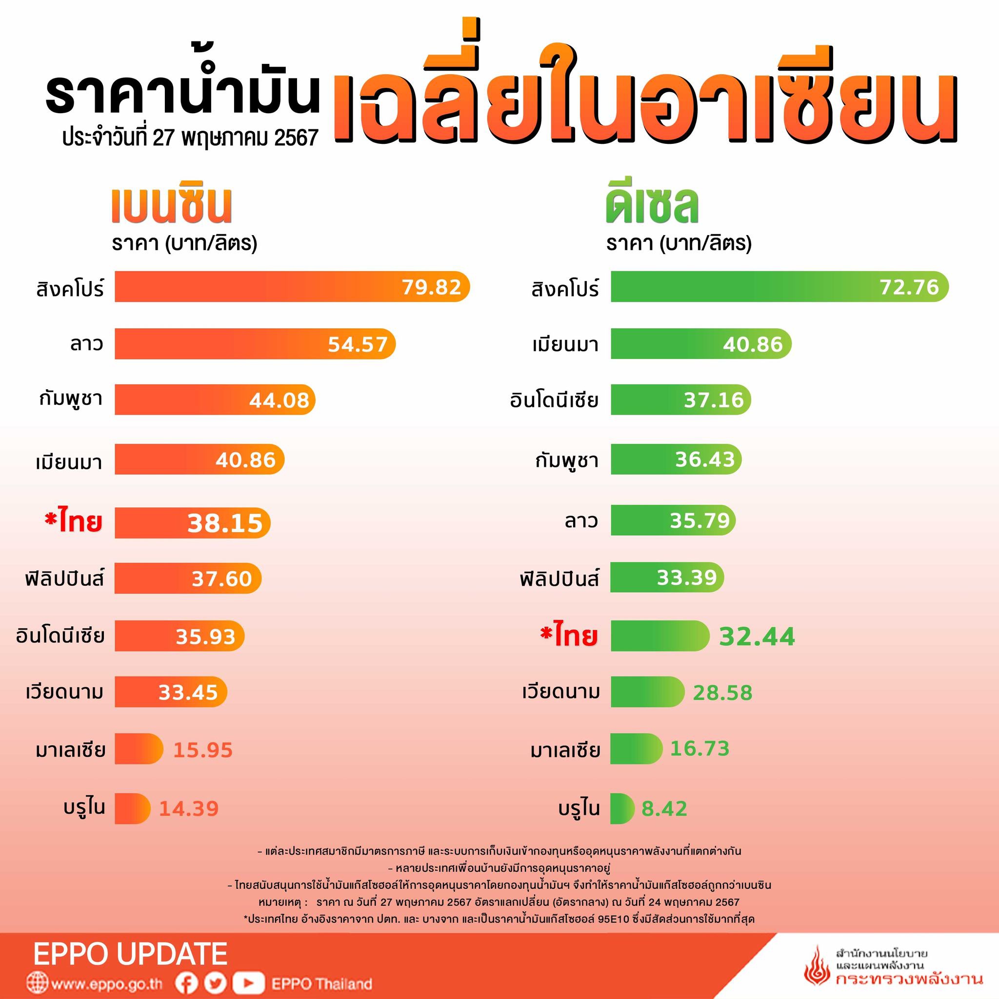 ราคาน้ำมันเฉลี่ยในอาเซียนประจำวันที่ 27 พฤษภาคม 2567   [...]