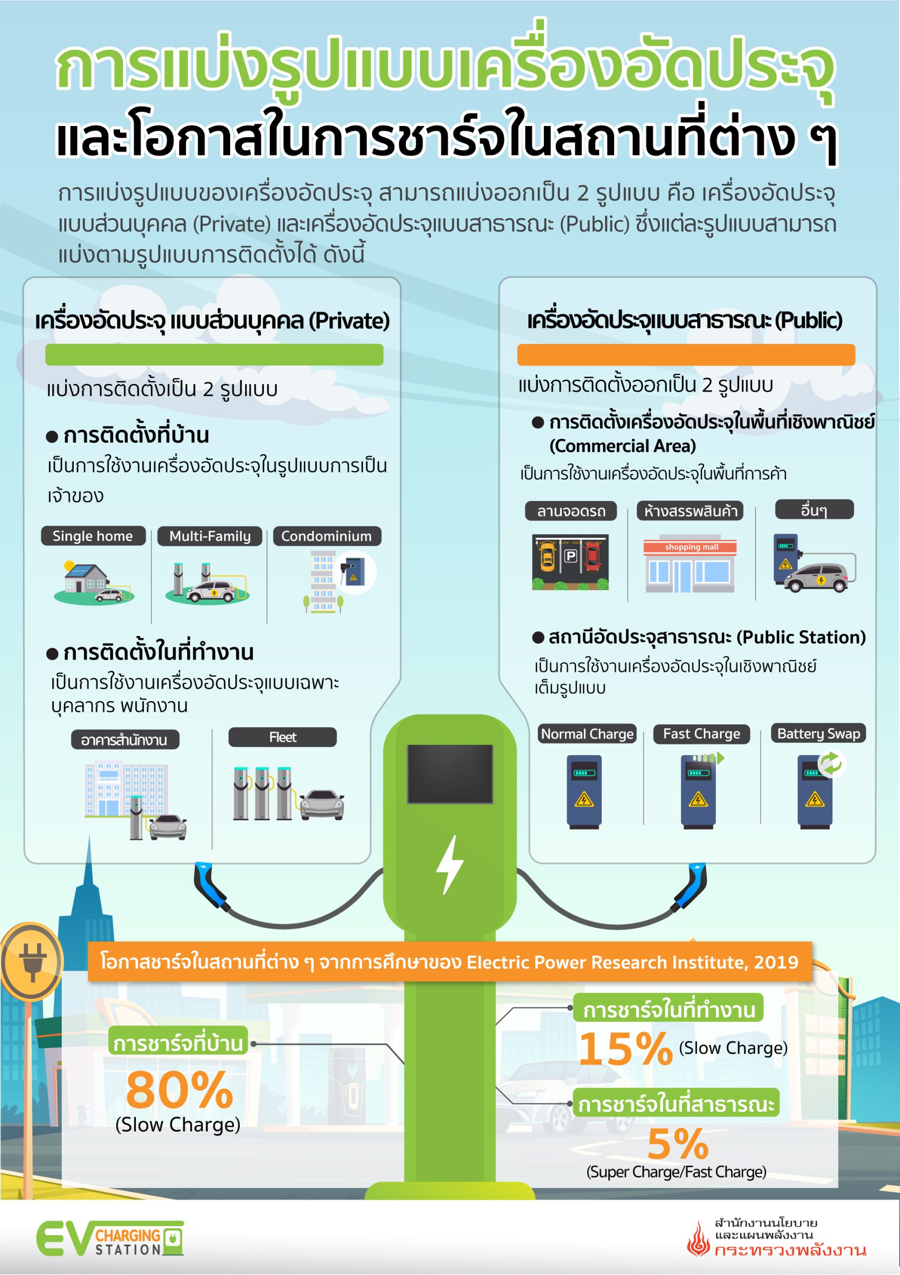 การแบ่งรูปแบบเครื่องอัดประจุและโอกาสในการชาร์จในสถานที่ต่าง ๆ