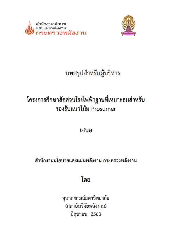 โครงการศึกษาสัดส่วนโรงไฟฟ้าฐานที่เหมาะสมสำหรับรองรับแนวโน้ม Prosumer